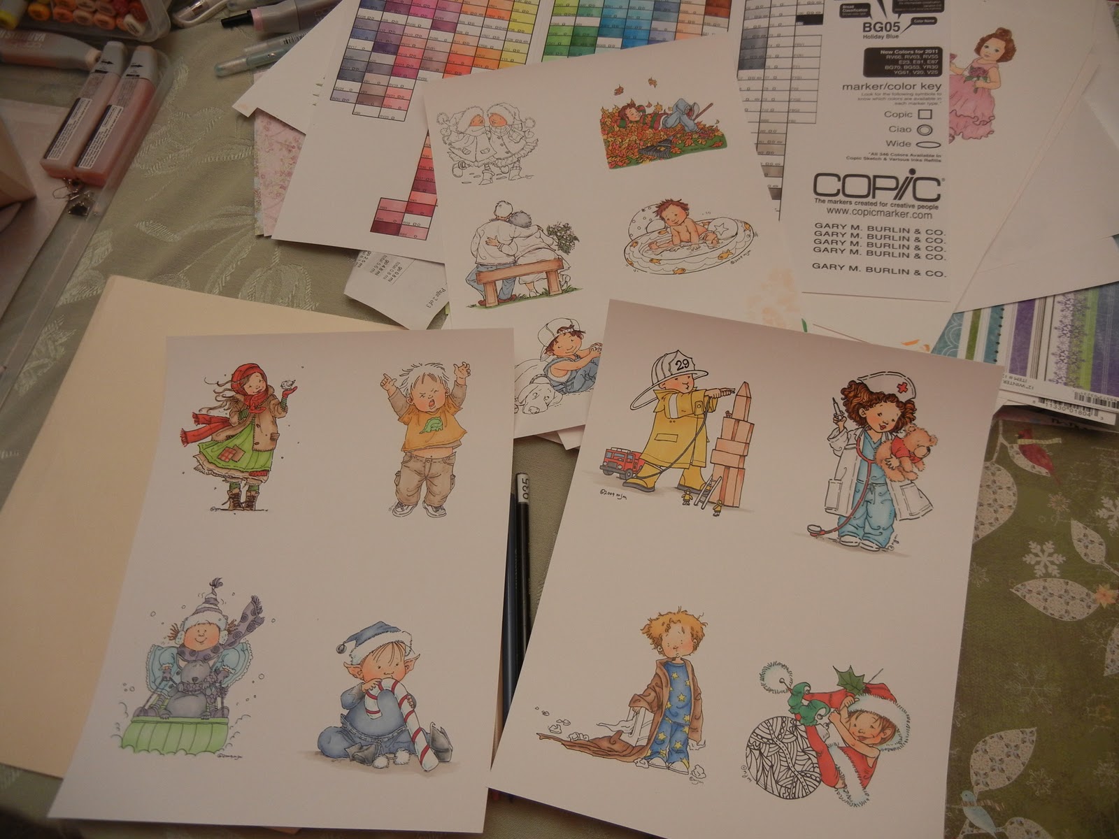 I got a new copic marker chart from my FAVORITE stamp store, Buffalo Stamps & Stuff on Sheridan Drive. It it perfect, except that I wished it was easier to match up my paper choices...then, about 2am I had one of those Ah ha moments! (cuz that is the way I am) I have a tool that creates holes for grommets and it works perfect! Ta da !